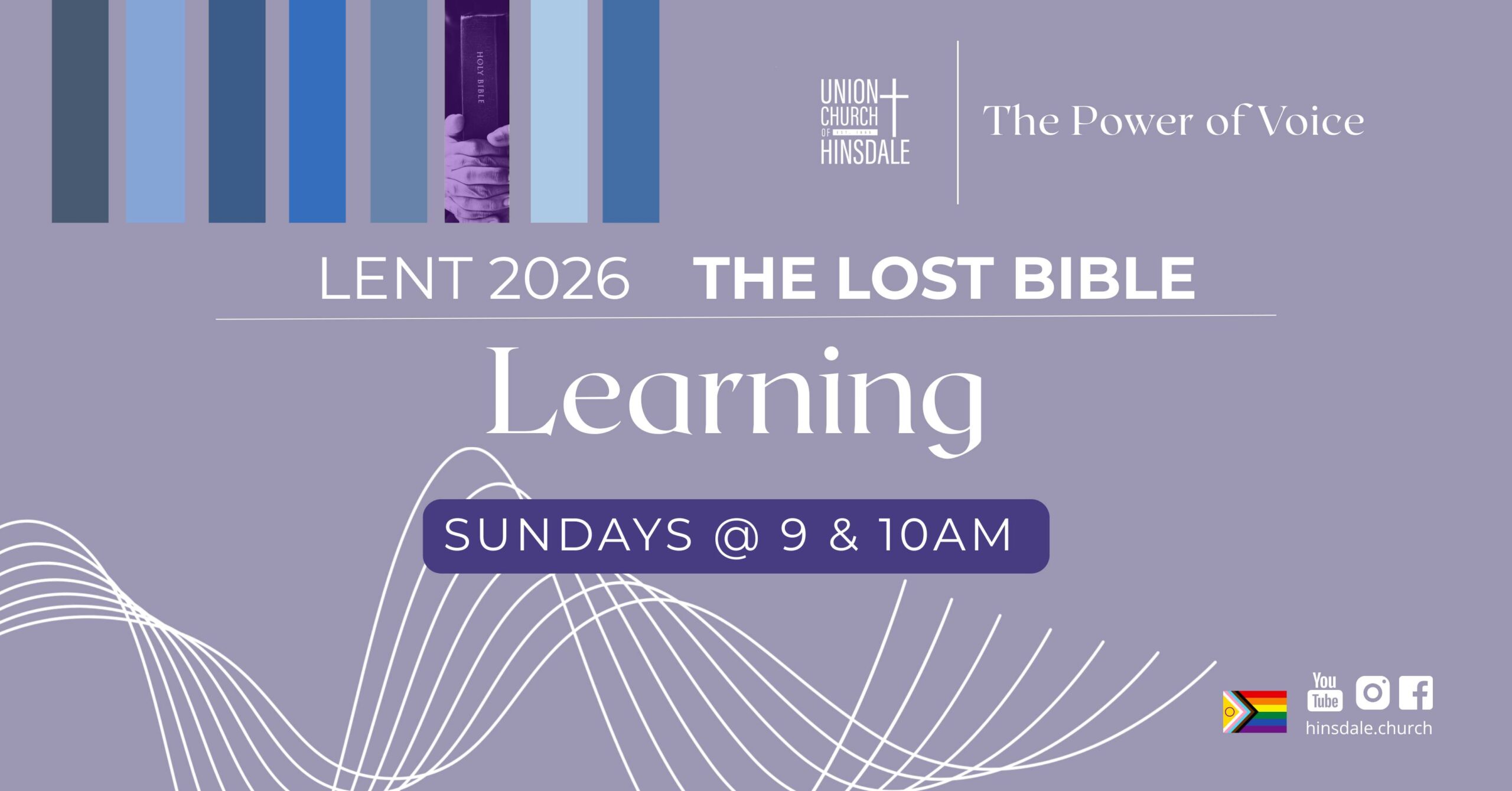 Welcome to the 2026 season of Lent at Union Church of Hinsdale! Here’s how we are celebrating this year – we hope you will join us for one, some, or all! Our faith is 2,000 years old; our Bible is only 200 years old. Beyond the 66 books in our common Bible, many other Christian writings exist. During Lent, Union Church worship will explore the Christian Writings that were omitted from the Bible. These “lost voices” of the early church include